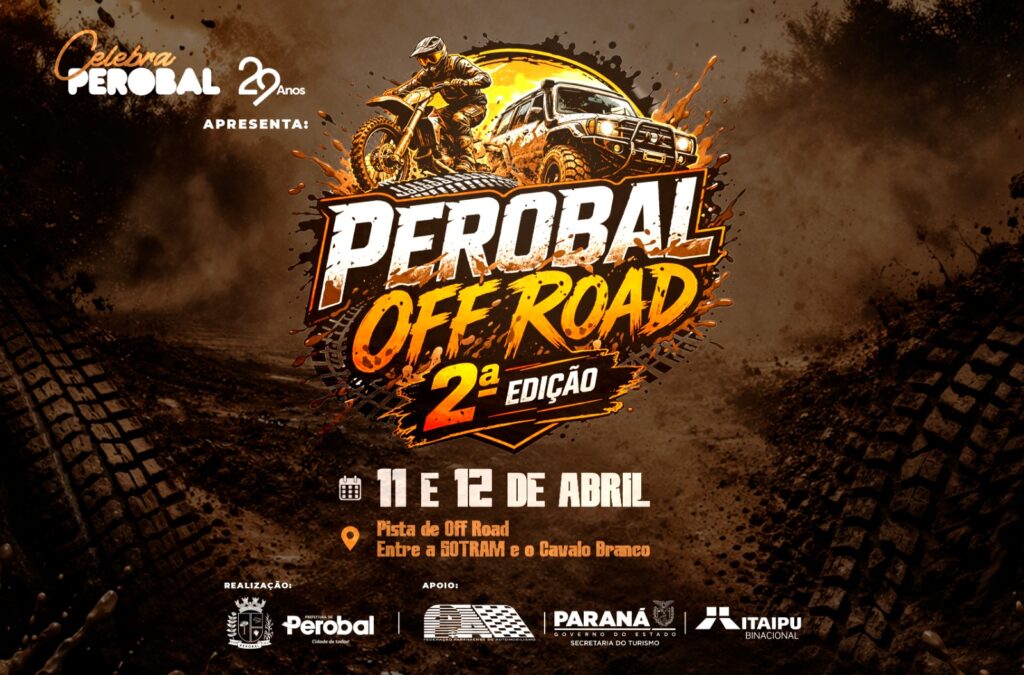 A cidade de Perobal dá início à sua programação especial de aniversário com um evento que promete movimentar a região e atrair amantes da adrenalina e da natureza. Nos dias 11 e 12 de abril, acontece a 2ª edição do “Perobal Off Road”, marcando oficialmente a abertura da grade de eventos em comemoração aos 29 anos do município.