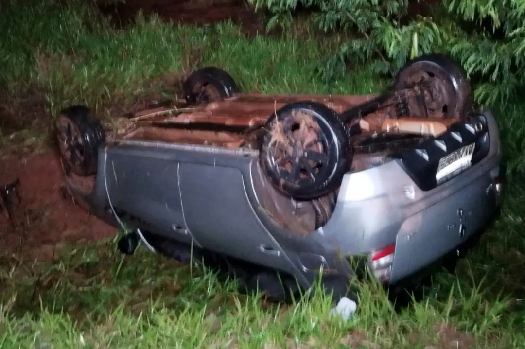 Um acidente de trânsito do tipo capotamento, por volta das 21h, desta sexta-feira (08), na PR 323, altura do km
